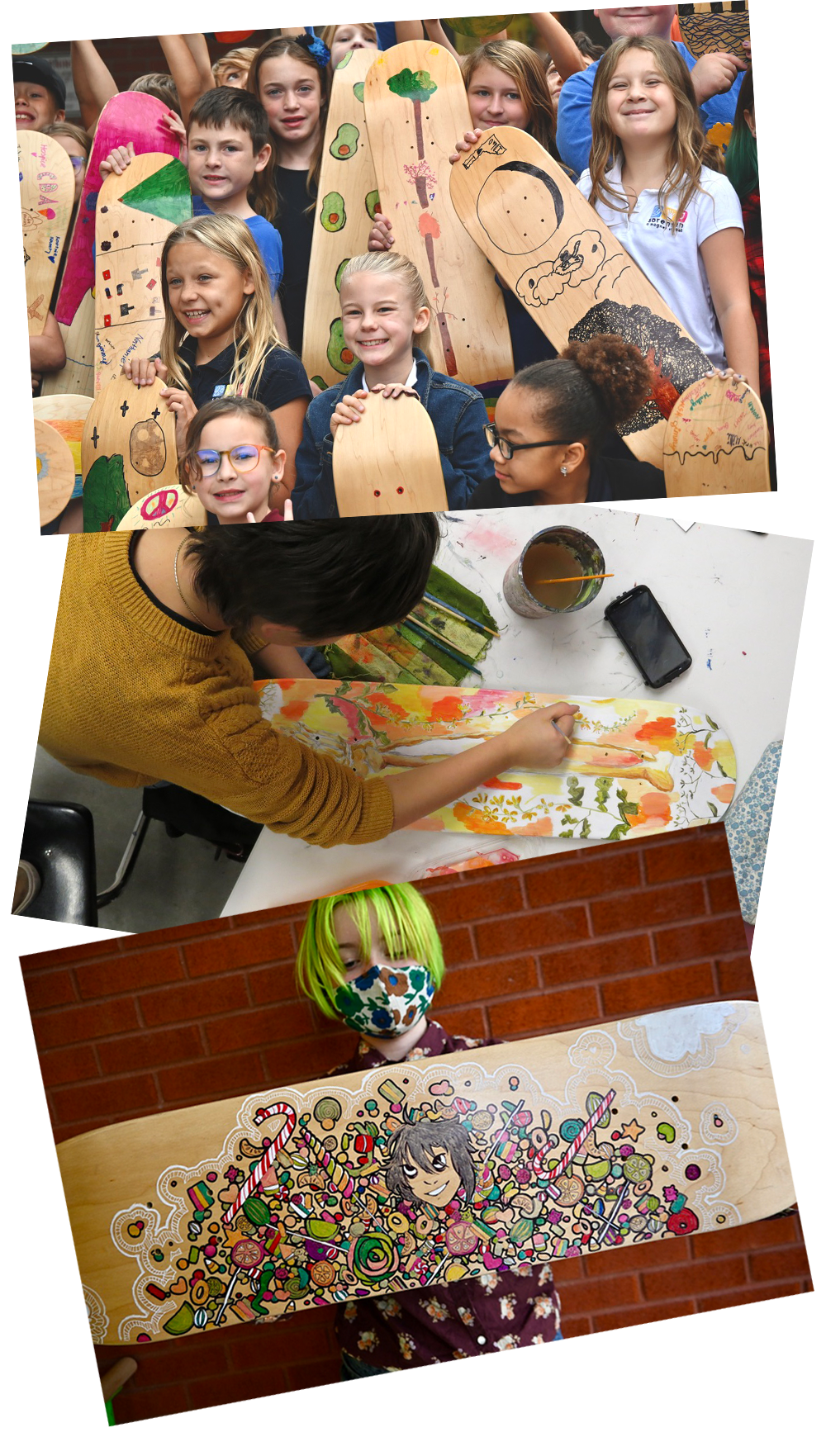 A Skateboard Art project is more than just a unique canvas. Skateboarder or not, students all understand the cultural value that comes with designing their own skateboard deck. The iconic canvas of a skate deck, is a recognizable source of pride in our youth.